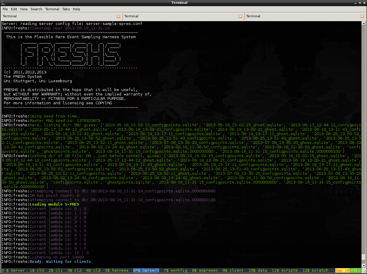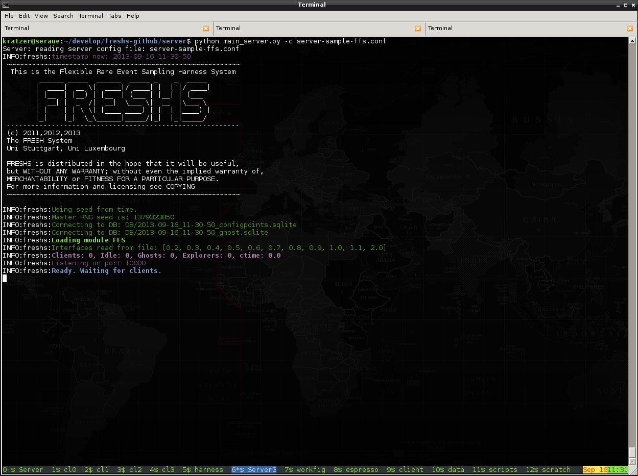 This is how the server looks like just after starting with the sample configuration files.